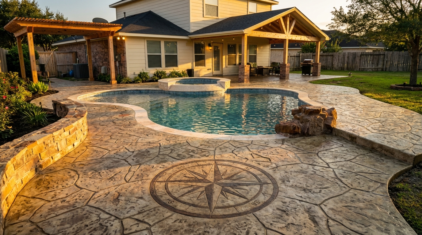 From our home base in Pearland (77584), we serve homeowners across Brazoria County & South Houston Area with residential concrete work—driveways, patios, walkways, slabs, and stamped finishes.